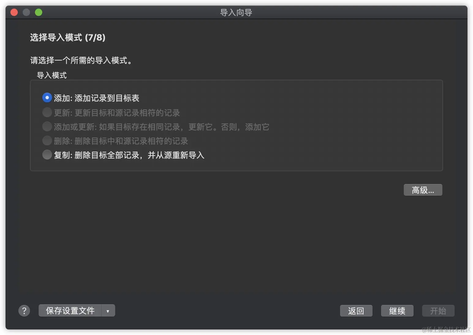 根据需要选择导入模式,最后点击开始即可。