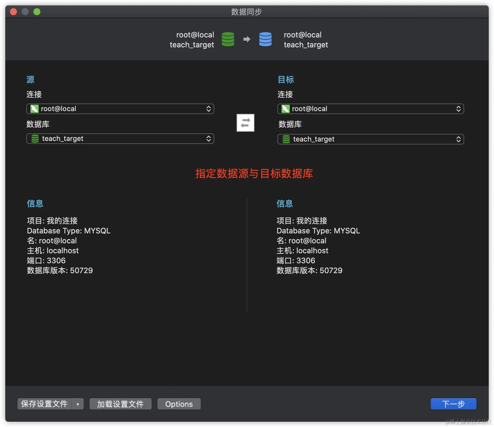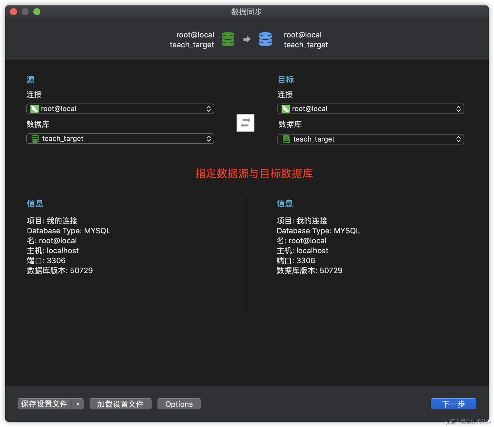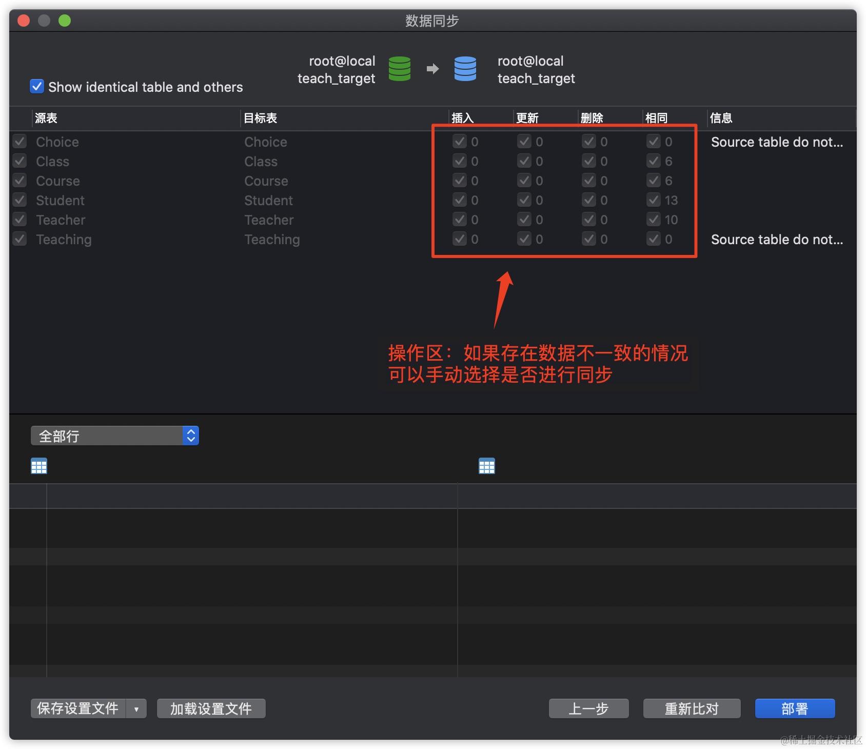数据同步的操作步骤与数据传输类似,同样需要先指定数据源与目标数据库,区别在于数据同步会先比较两个数据库的差异,用户可以自行决定是否进行同步,主要适用于有相同表结构的数据库以及主从分布等场景。