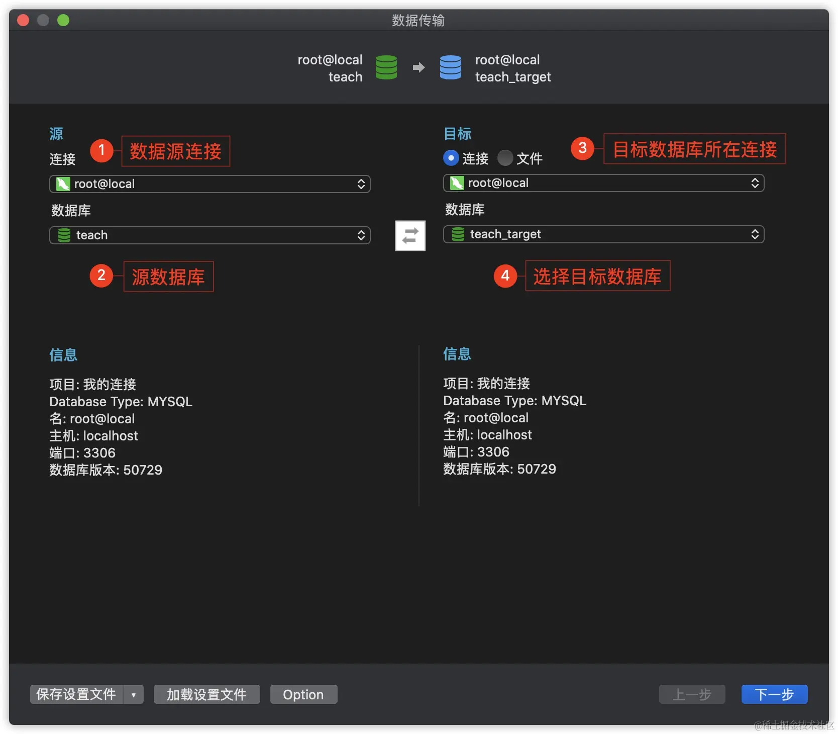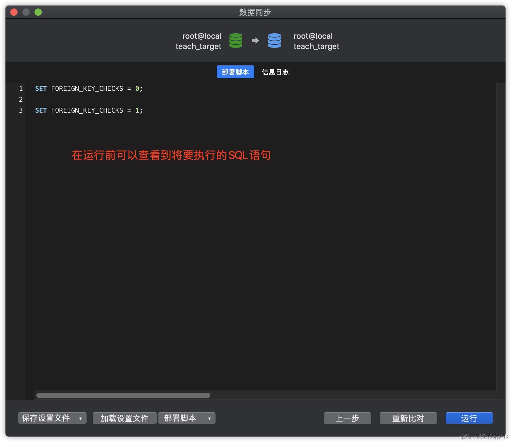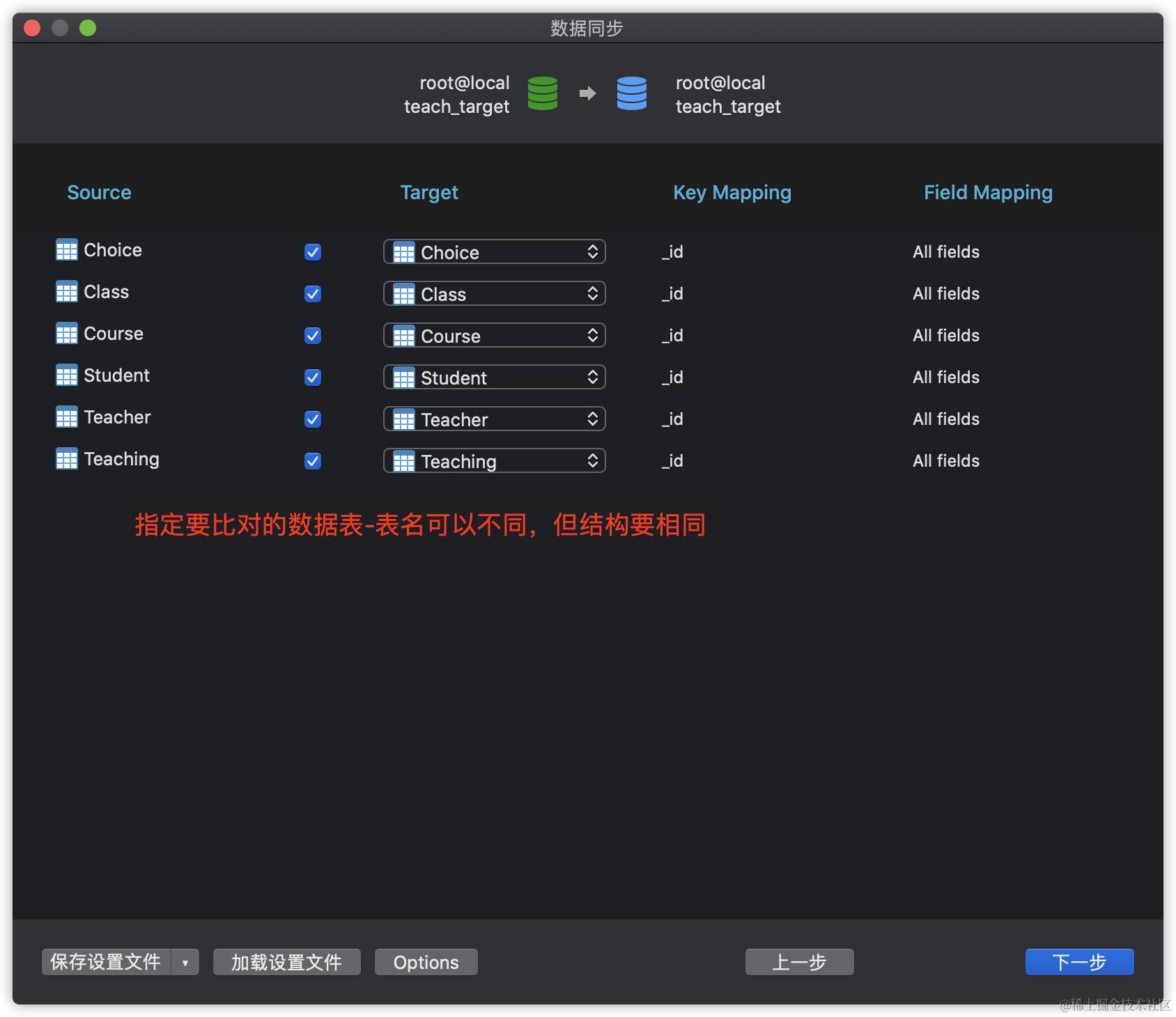 数据同步的操作步骤与数据传输类似,同样需要先指定数据源与目标数据库,区别在于数据同步会先比较两个数据库的差异,用户可以自行决定是否进行同步,主要适用于有相同表结构的数据库以及主从分布等场景。