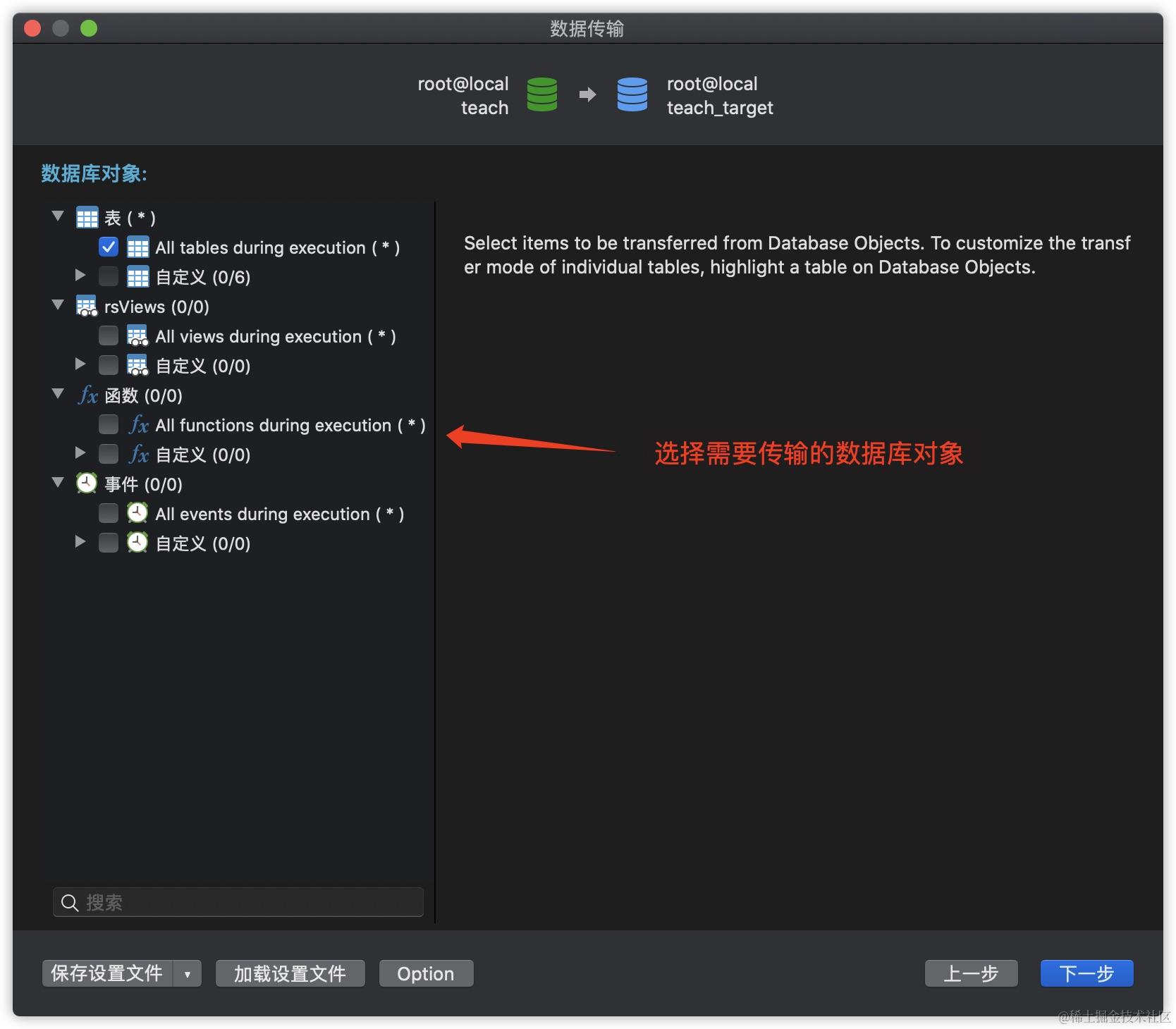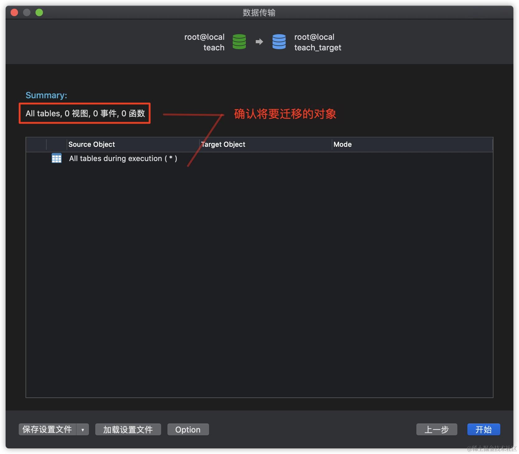 使用数据传输功能的效果与通过SQL语句进行数据导入类似,一般都会先删除已存在的相同的表,这一点一定要注意,使得最终结果与数据源相同,完成完整的数据迁移。