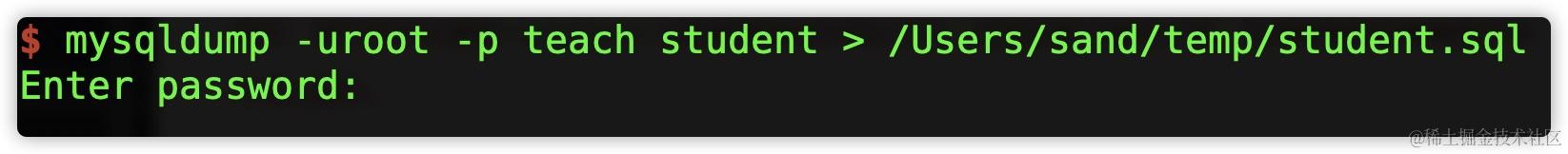mysqldump -u 用户名 -p 数据库名 数据表名 > '文件路径'