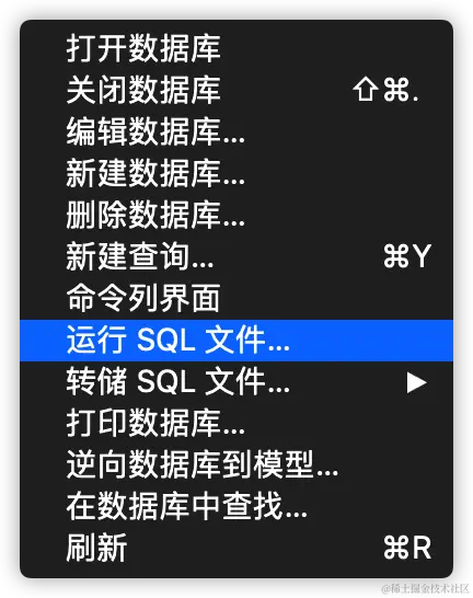 除此之外,如果我们想要进行整个数据库的数据导入,也可以直接右键数据库:运行SQL。