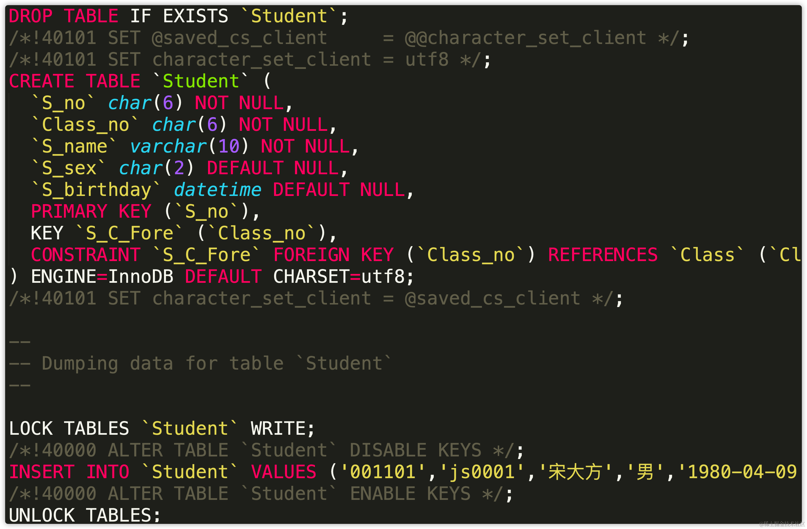 会生成建表语句及数据插入语句。