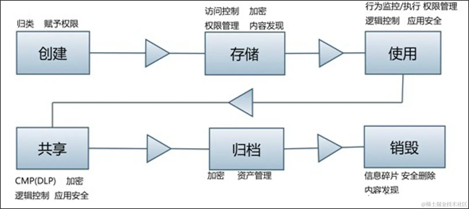 - 销毁:数据销毁代表数据生命周期的结束,会将数据完全删除,但在大数据时代下,数据即财富,通常只会进行归档操作。