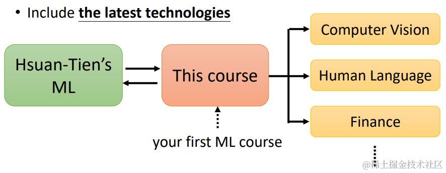 这门课主要专注于深度学习,可以是你的第一门 ML 课程。熟悉我的朋友都知道,我之前专门写过林轩田老师的机器学习课程笔记,该课程与林轩田的机器几乎没有重叠,既包含了基础的机器学习技术,也包括了最新的 AI 技术。
