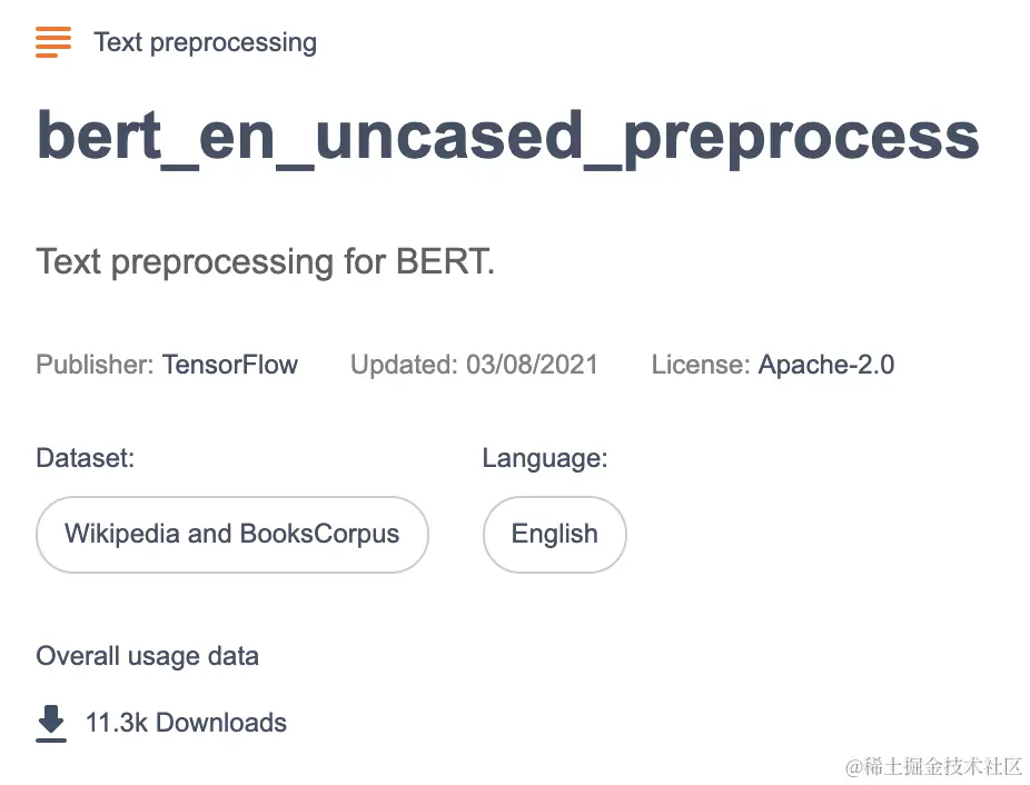 preprocessor = hub.load('./bert_en_uncased_preprocess/3')