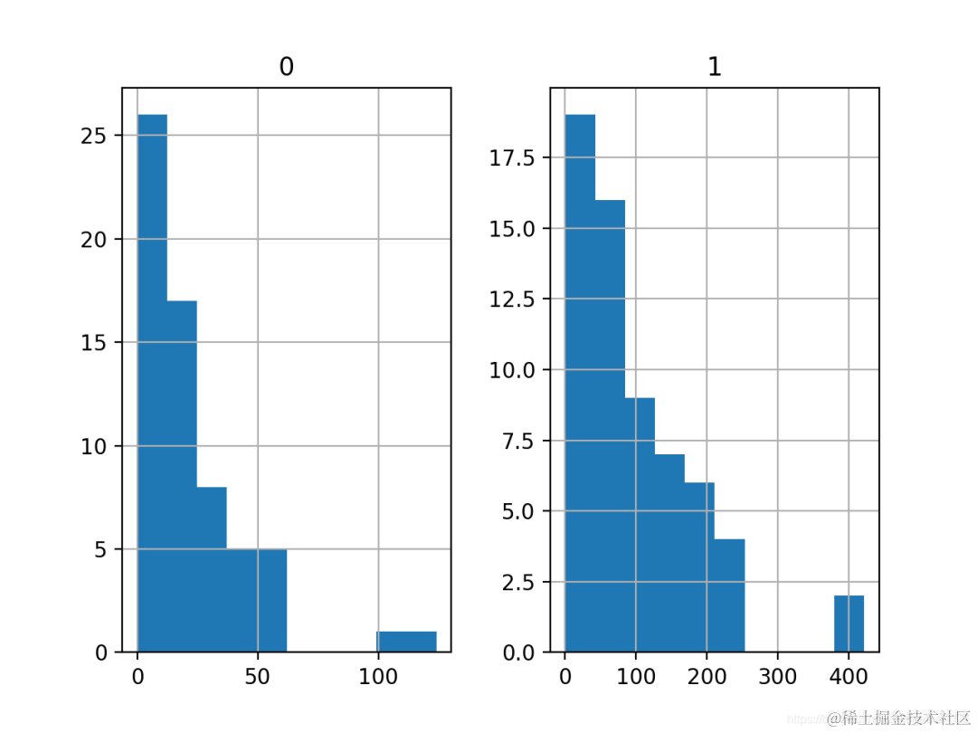 我们可以看到每个变量都有相似的分布。它看起来像偏态的高斯分布或指数分布。