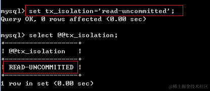 例2:将事务的隔离级别设置为Read uncommitted级别: