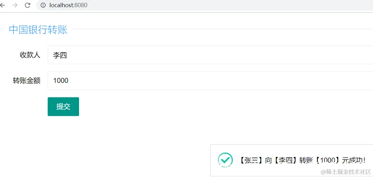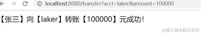 Request URL: http://localhost:8080/transfer?acct=%E6%9D%8E%E5%9B%9B&amount=1000
