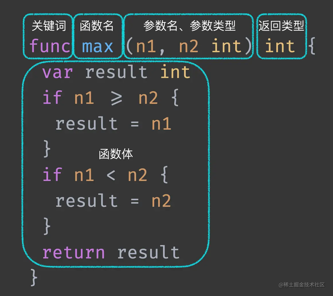 由于是强类型语言,与 js 不同,在函数声明的过程中,需要指定参数与返回值的类型。