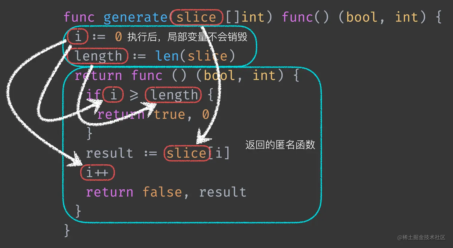 fmt.Println("inner slice =", slice)