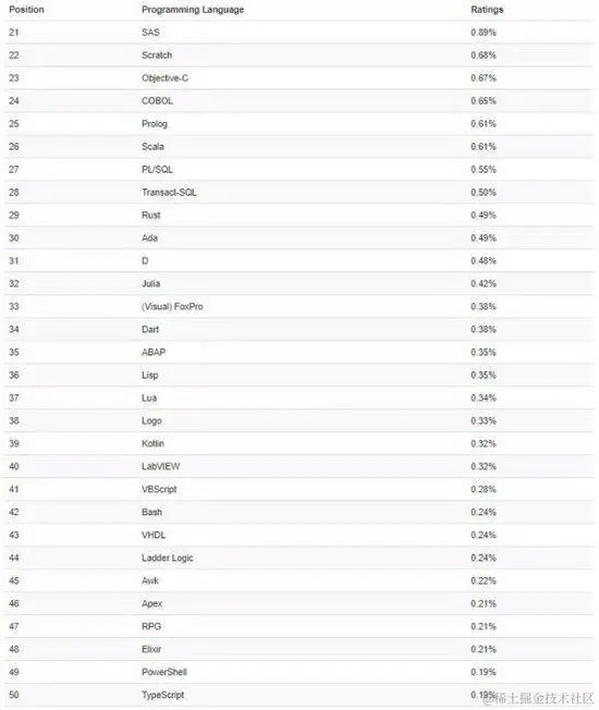 这个排行榜可以用来考察你的编程技能是否与时俱进,也可以在开发新系统时作为一个语言选择依据。