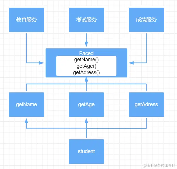 从上面两张图可以看到,对于外部服务来说,极大的缩减了代码复杂度,只需要调用学生服务的一个接口。\