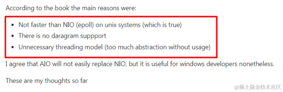 然后看下Netty作者在这个问题上的原话: