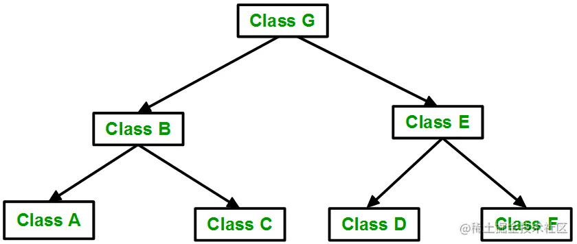 4.层次继承:在这种继承中,一个基类继承了多个子类。即,从一个基类创建一个以上的派生类。
