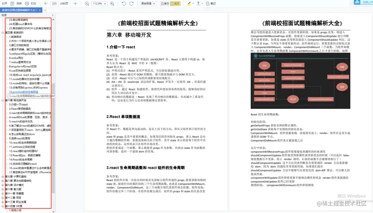 下面分享一份我整理的前端校招面试题,分了HTML、css、JavaScript、React、Vue、浏览器、服务端与网络、算法等等,共280页PDF。