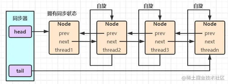 线程会试图修改state的值,如果修改成功那么表示线程得到或释放了同步状态,如果失败就会将当前线程封装成一个Node节点,然后将其加入到同步队列中,并阻塞当前线程。