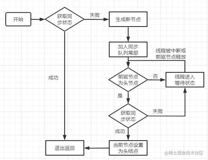 3.添加新节点完成后,调用acquireQueued方法,尝试以自旋的方式获取同步状态: