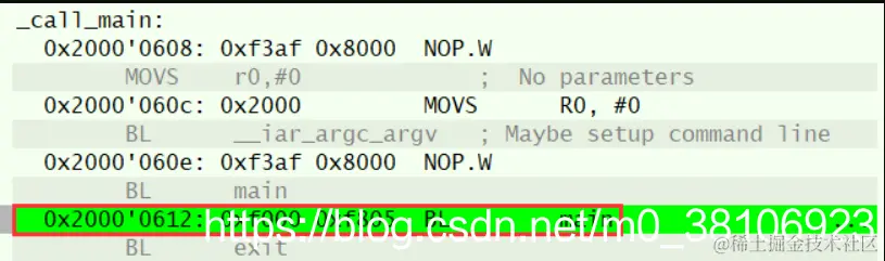 在__cmain函数的最后,跳转到用户的main函数,最终开始用户的代码执行。