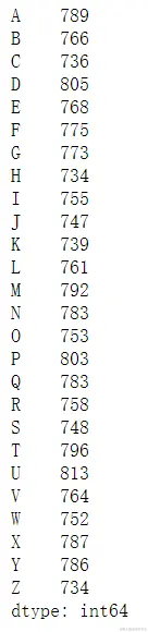接下来使用pandas中Series的value_counts()函数,观察数据集中每一种字符的数量分布。