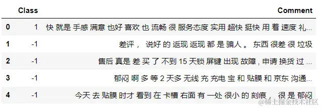 现在,我们要将Comment列的文本信息,转化成数值矩阵表示,也就是将文本映射到特征空间。