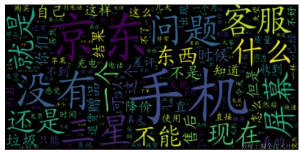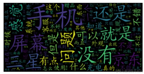 从词云展现的词频统计图来看,"手机","就是","屏幕","收到"等词对于区分毫无帮助而且会造成偏差。因此,需要把这些对区分类没有意义的词语筛选出来,放到停用词文件stopwords.txt中。实现代码如下所示: