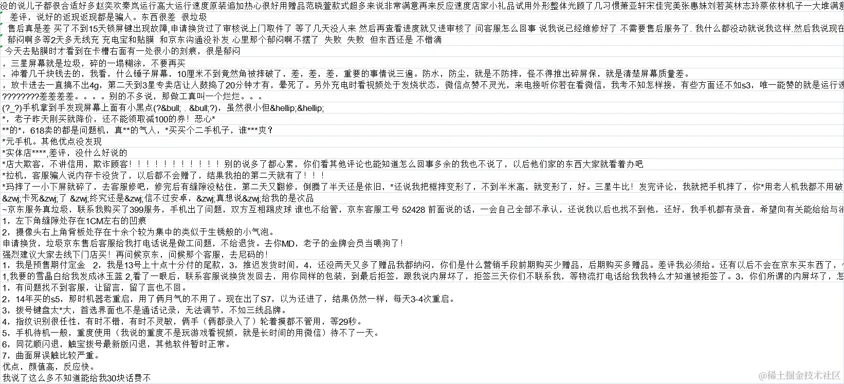 本案例主要讨论如何对商品评论进行情感倾向判定。下图为某电商平台上针对某款手机的部分评论: