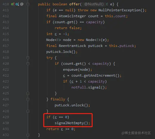 其中signalNotEmpty() 最终会走到 doSignal 方法,而该方法里面会调用 transferForSignal 方法。