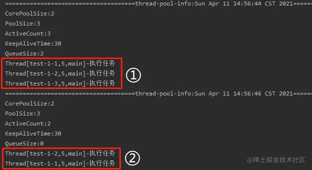 - Thread[test-1-1,5,main]-执行任务