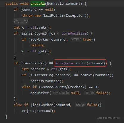 线程池是在这里把任务放到队列里面去的。