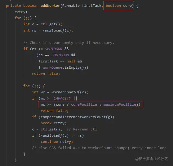 core 参数仅仅是控制取 corePoolSize 还是 maximumPoolSize。