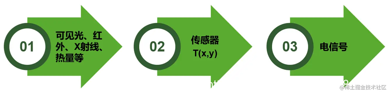 千差万别的成像系统对现实世界中的可见光、红外、X射线、热量等实施某种转换T (x,y),将物理量转换为电信号,再经图像采集设备采样、量化后生成数字图像。
