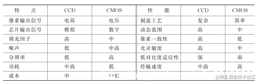 CCD和CMOS图像传感器比较,如下表所示: