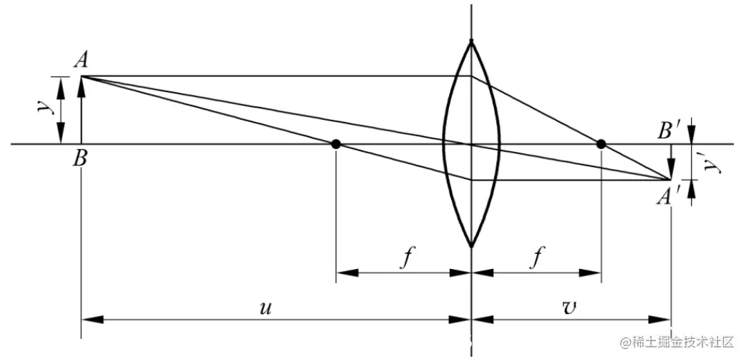 镜头系统一般使用透镜系统,其成像遵循高斯成像公式: