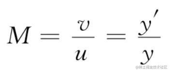 此时,透镜的放大率M则可以等效为: