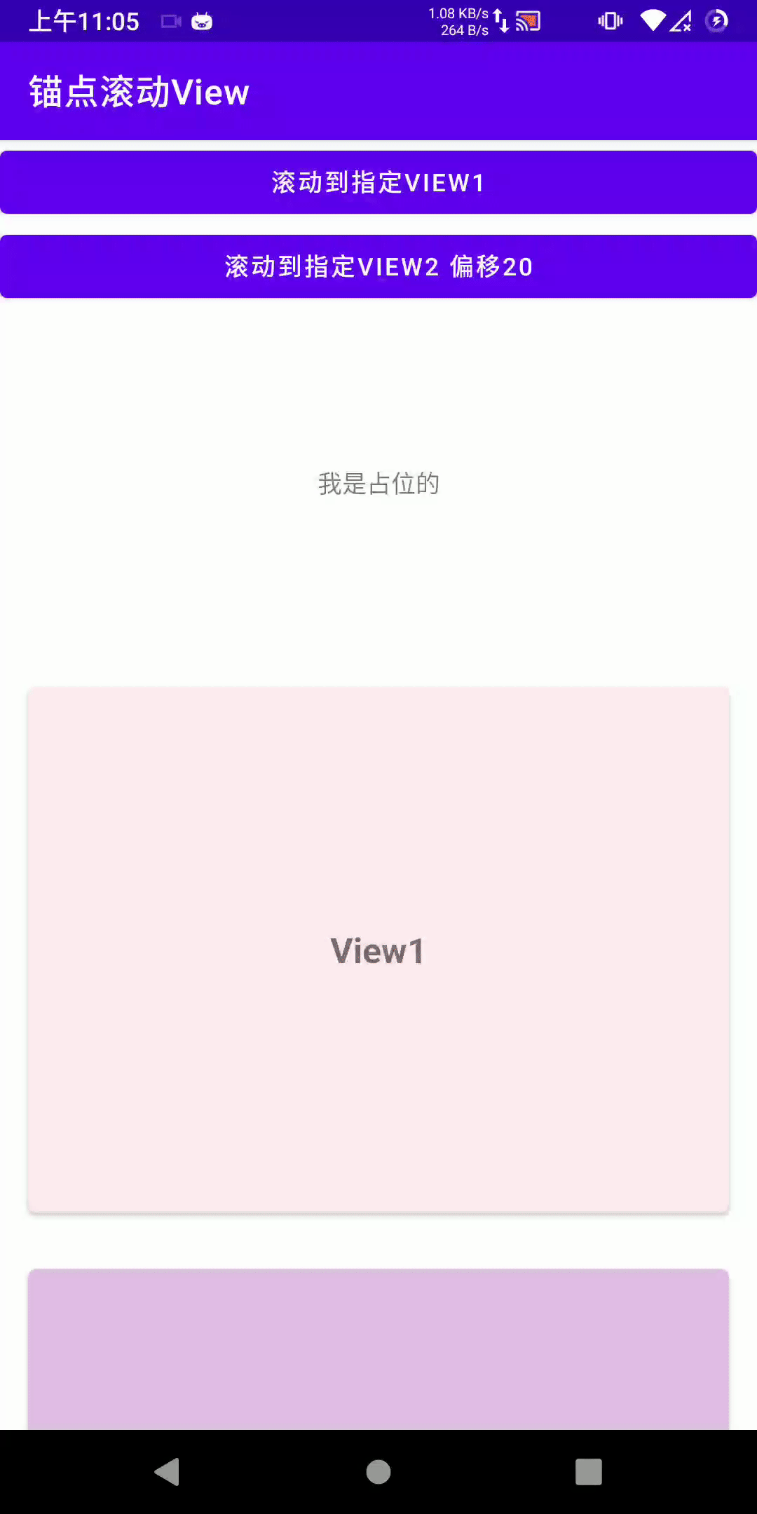 一个锚点定位的ScrollView。在ScrollView中本身有smoothScrollBy(Int,Int)、scrollTo(Int,Int)这种可以滚动到指定坐标位置的方法。我们可以基于这个方法来进行定位View的位置。