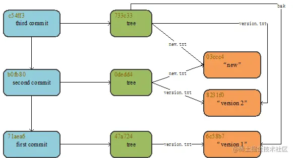 git 对象: 前面也讲了 git 对象有 BLOB(binary large object),tree,commit 三种,点击这里跳转到前面,