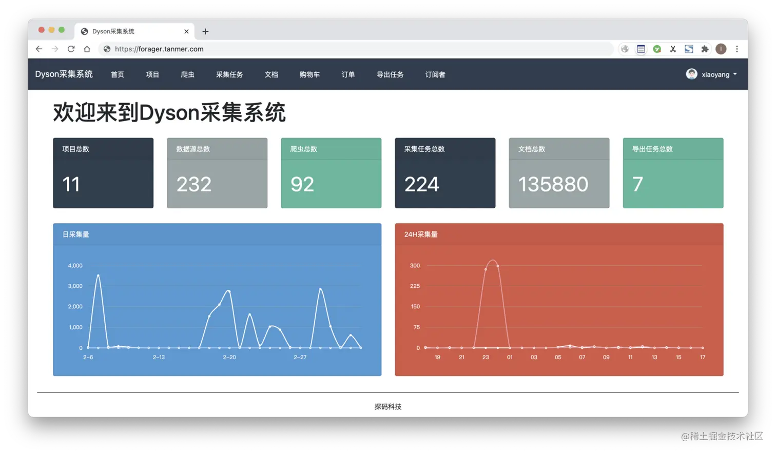Dyson 网络数据采集系统适用于多源数据采集,需要定制化开发并私有化部署的大规模网络数据采集系统。系统提供从数据采集,爬虫撰写,任务调度,数据清洗合并到数据存储一站式服务。