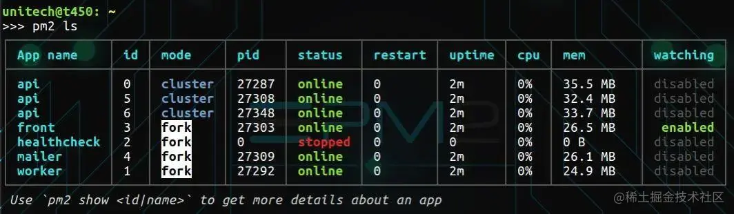 查阅官方文档,以获取 PM2 功能给的完整列表。