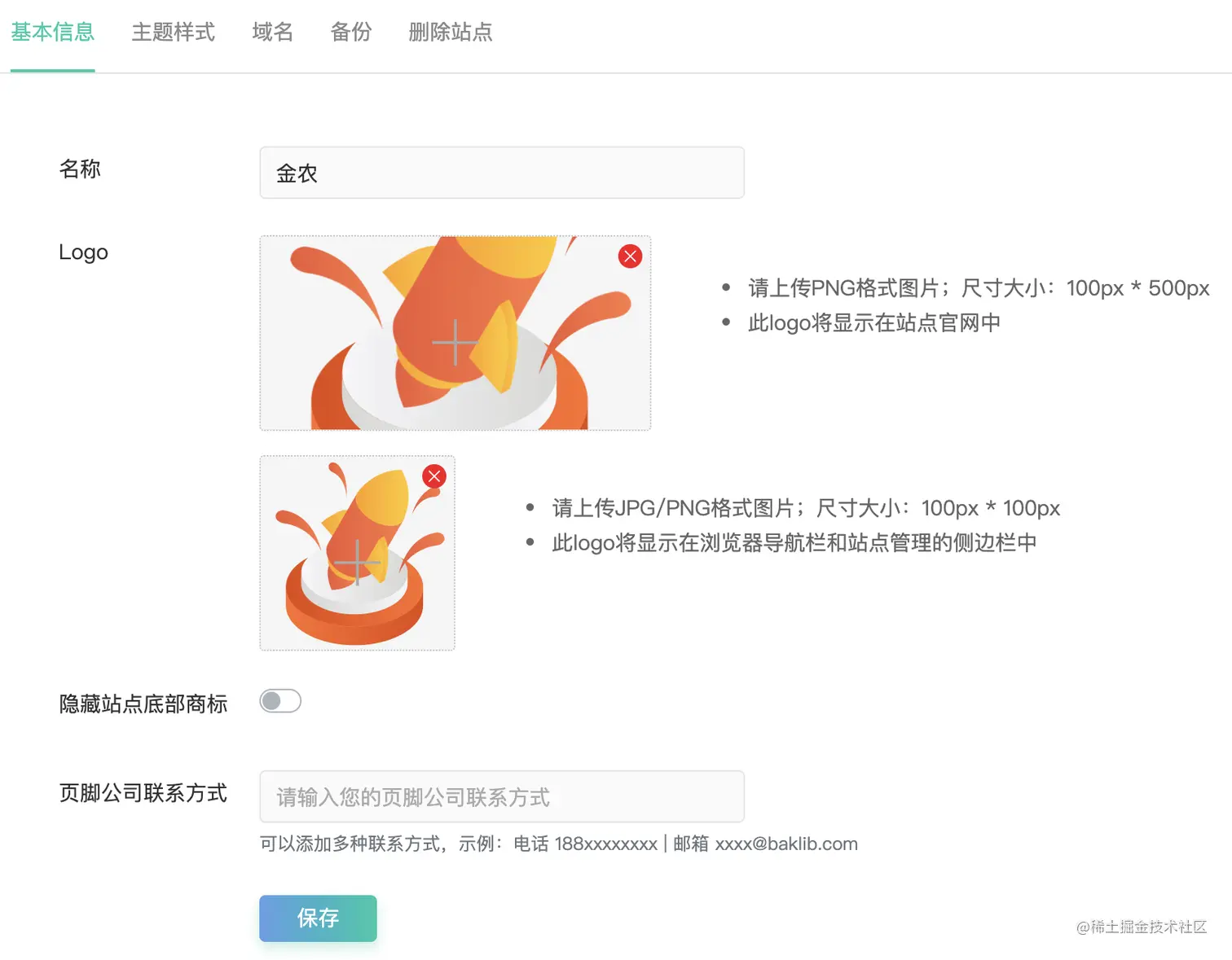 添加帮助中心站点名称,logo,企业联系方式。