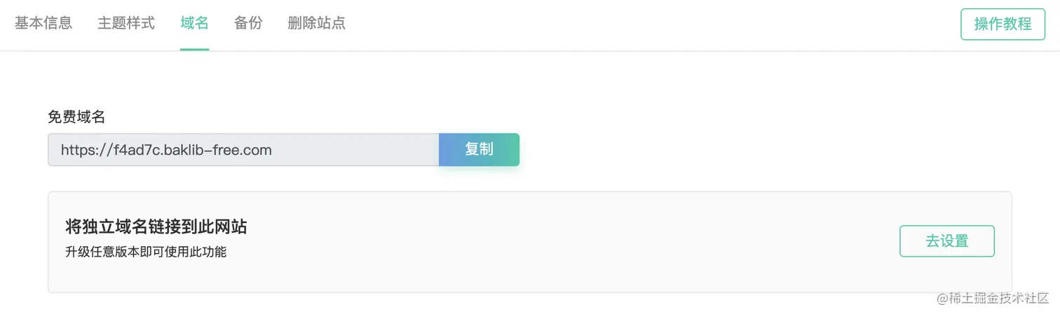 当您拥有自己的域名之后,可以在这里把域名绑定到 Baklib 的二级域名站点,填上备案号,就能够拥有一个自己品牌网站。