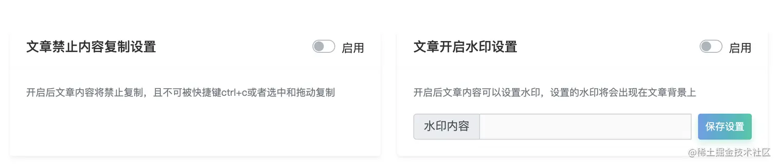 开通内容保护,可以禁止内容复制和添加水印等。