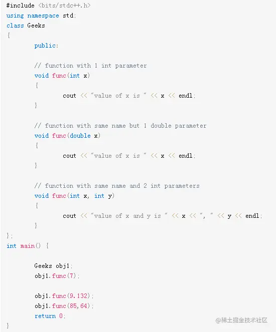 编译时多态性:这种类型的多态性是通过函数重载或运算符重载来实现的。