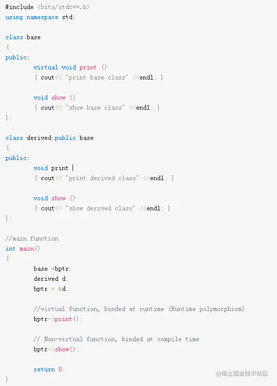 运行时多态性:这种类型的多态性是通过函数覆盖实现的。
