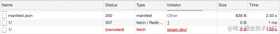 再通过谷歌开发者工具查看网络请求,发现请求也被取消了