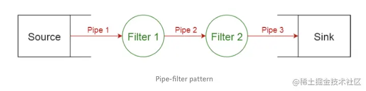 此模式可用于构建产生和处理数据流的系统。每个处理步骤都包含在一个过滤器组件中,要处理的数据通过管道传递。这些管道可用于缓冲或者同步。