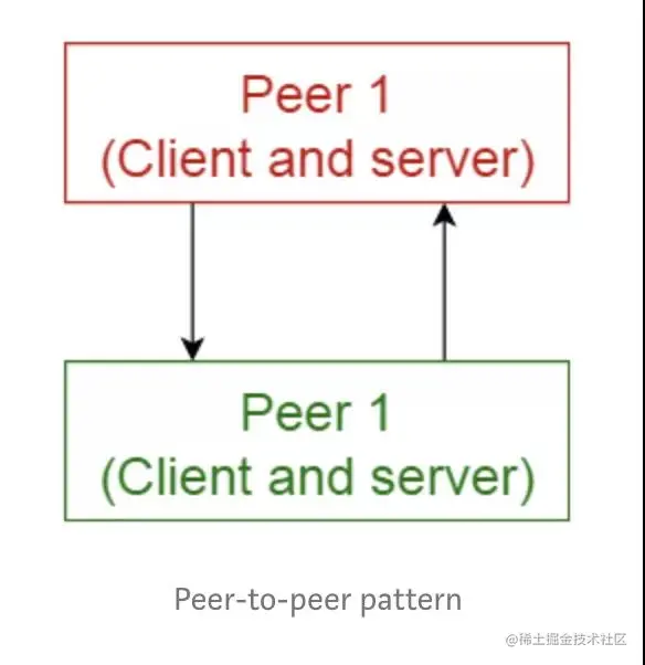 在此模式中,每个独立的组件被称为对等点(或对等端,peer)。对等端既可以充当客户端(向其它对等端请求服务),又可以充当服务器(向其它对等方提供服务)。同一个对等端可能既是客户端,又是服务器,并且可以动态改变其角色。