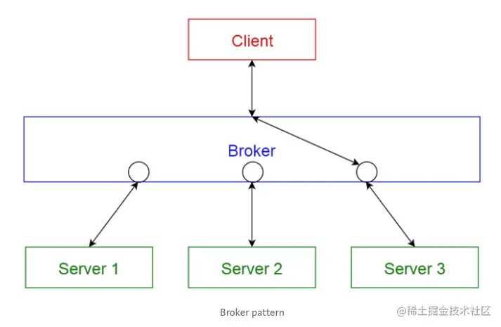 服务器将它们的功能(服务和特征等)发布到代理,客户端向代理请求服务,然后代理根据其注册表将客户端请求转发给合适的服务。