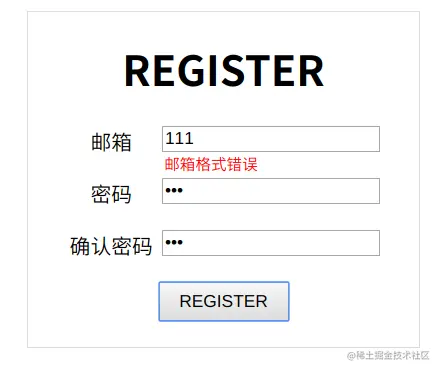 if (email.indexOf('@') === -1) { // 邮箱中没有@说明邮箱格式错误
