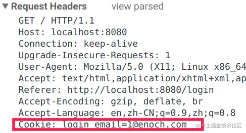 cookies = request.headers.cookie.split('; ') // ['login_email=1@enoch.com', 'a=1', 'b=2']